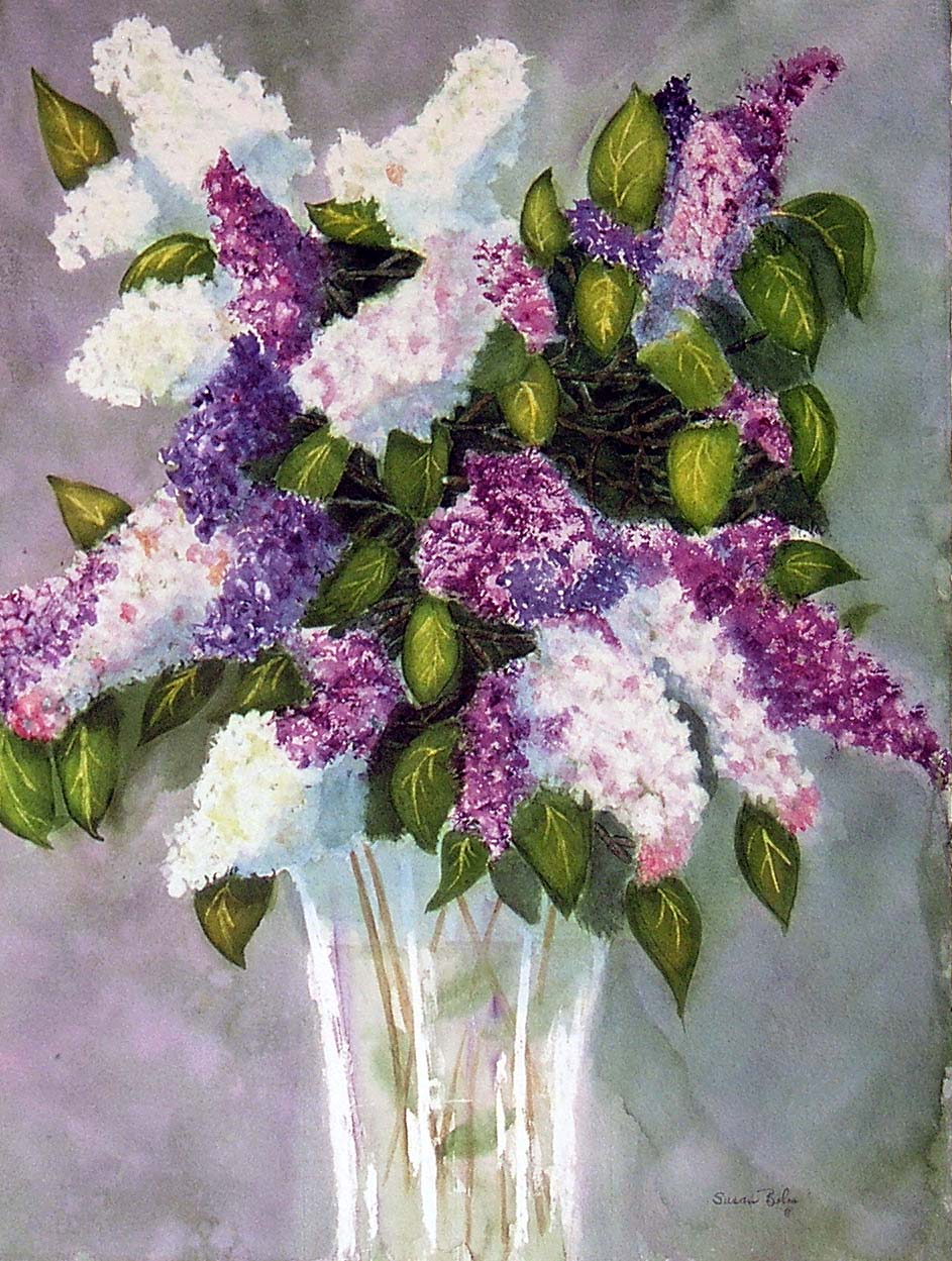 Giclee' print of original watercolor painting of Lilacs in a crystal vase printed on premium paper.