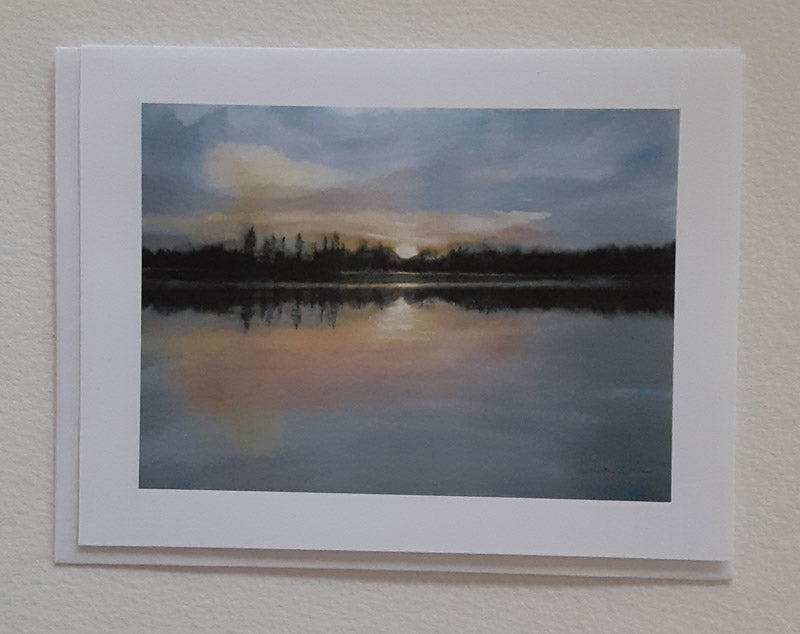 "Little Boy Lake" is a box of 8 note cards and envelopes whose image is from an original watercolor painting of (early morning) Little Boy Lake near Walker, MN.