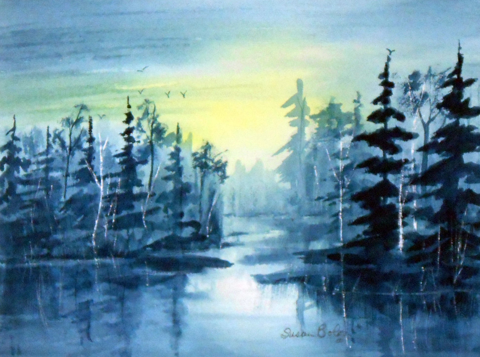 Shown here "Lake Scape 1" has been printed on canvas for the homeowner. It was rolled up and mailed to Colorado where they took it to Hobby Lobby and it was stretched on a gallery wrap frame. The canvas print size is 41h x 53 3/4 w plus what is wrapped around stretcher.