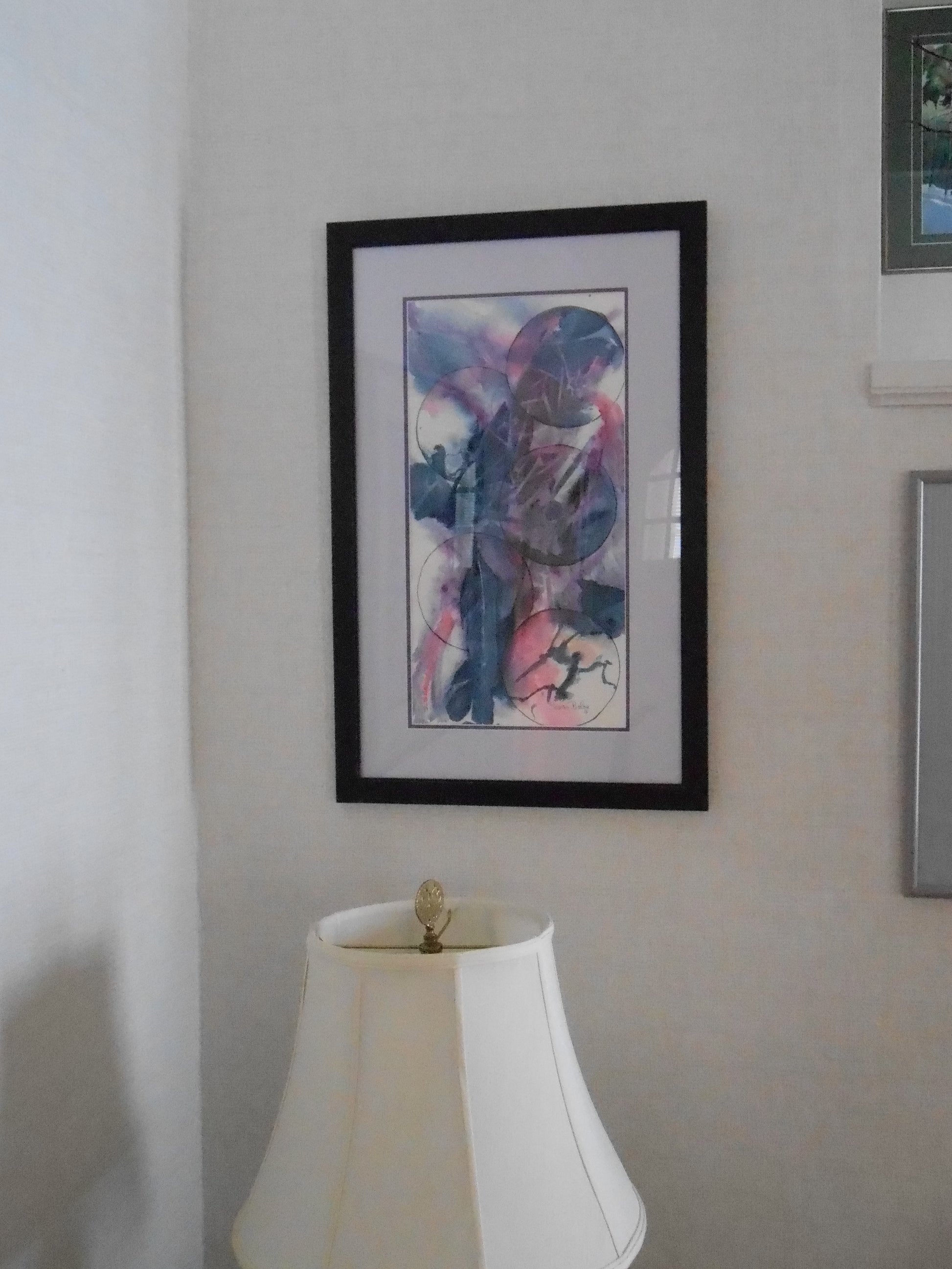 Shown here "Lake Scape 1" has been printed on canvas for the homeowner. It was rolled up and mailed to Colorado where they took it to Hobby Lobby and it was stretched on a gallery wrap frame. The canvas print size is 41h x 53 3/4 w plus what is wrapped around stretcher.