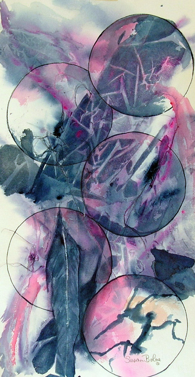 "The Feather" is a ONE OF A KIND abstract original transparent watercolor painting on Arches 140# paper. Image size is 11 1/2 w x 22h Framed size is 19 1/4 w x 29 3/4 h Priced Framed is $350.00 Frame is mate black and mat is greyish.