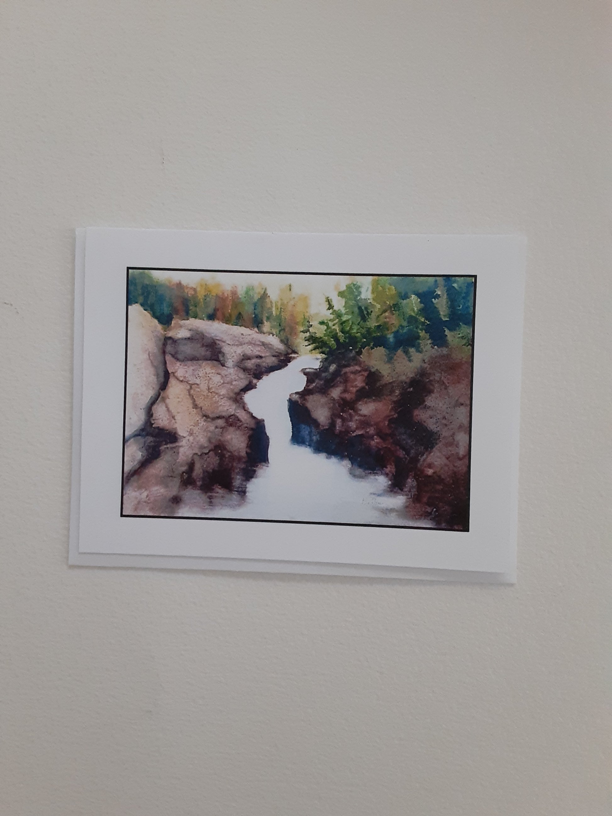"Waterfall" is a box of 8 cards and envelopes whose image was created from an original watercolor painting.